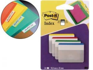 Banderitas separadoras rigidas dispensador 4 colores post-it index 686a-1 grandes 24 banderitas