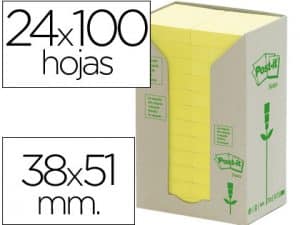 Bloc de notas adhesivas quita y pon reciclada en torre post-it 38 x 51 mm 24 blocs 653 reciclado