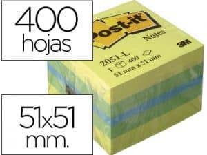 Bloc de notas adhesivas quita y pon post-it 51×51 mm minicubo color limon 2051-l 400 hojas