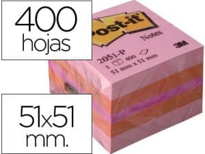 Bloc de notas adhesivas quita y pon post-it 51×51 mm minicubo color rosa 2051-p 400 hojas