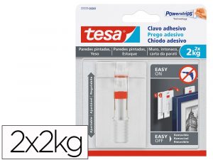 Clavo autoadhesivo tesa sujecion hasta 2 kg uso paredes pintadas removible blister de 2 unidades