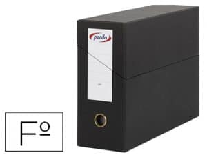 Caja transferencia pardo folio forrado extra doble lomo 80 mm estuche interior con tarjetero negra