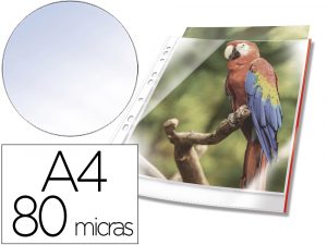 Funda multitaladro q-connect din a4 80 mc cristal bolsa de 100 unidades