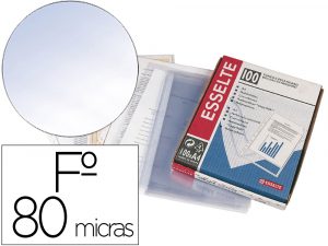 Funda multitaladro esselte folio pvc cristal 80 mc con refuerzo caja de 100 unidades