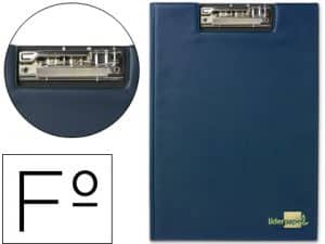 Portanotas pardo carton forrado pvc folio con pinza metalica azul