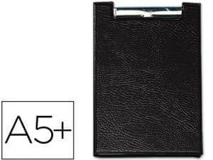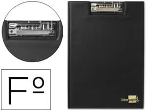 Portanotas pardo carton forrado pvc folio con pinza metalica negro