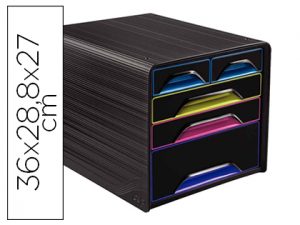 Fichero cajones sobremesa exacompta big-box aquarel negro 4 cajones colores pastel glossy