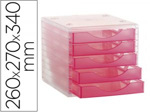 Fichero cajones de sobremesa archivo 2000 apilable 5 cajones fucsia translucido 260x270x340 mm