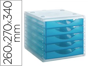 Fichero cajones de sobremesa archivo 2000 apilable 5 cajones lagoon translucido 260x270x340 mm