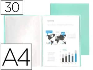 Carpeta liderpapel escaparate 30 fundas polipropileno din a4 verde manzana opaco