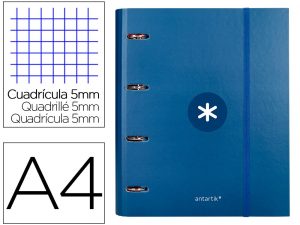 Carpeta con recambio liderpapel antartik a4 cuadro 5mm forrada 4 anillas 40mm redondas color azul marino