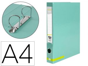 Carpeta de 2 anillas 25 mm mixtas liderpapel a4 forrado color system con ollao y tarjetero menta