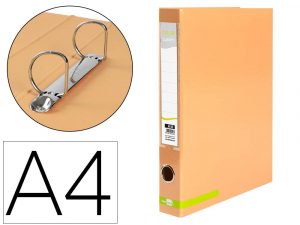 Carpeta de 2 anillas 25 mm mixtas liderpapel a4 forrado color system con ollao y tarjetero melocoton