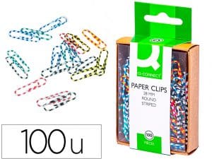 Clips colores rayados q-connect 28 mm caja de 100 unidades colores surtidos