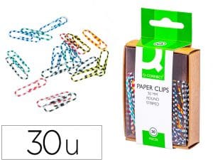 Clips colores rayados q-connect 50 mm caja de 30 unidades colores surtidos