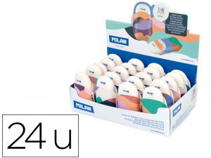 Goma de borrar milan the fun ovalada con funda caja de 24 unidades colores surtidos