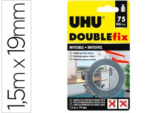 Cinta adhesiva uhu doublefix invisible doble cara extra fuerte 1,5 mt x 19 mm