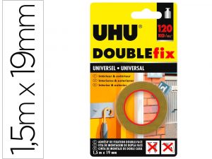 Cinta adhesiva uhu doublefix marron doble cara extra fuerte 1,5 mt x 19 mm