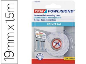 Cinta adhesiva tesa doble cara powerbond universal uso interior 1,5 m x 19 mm