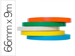 Cinta adhesiva q-connect 66 mt x 9 mm para cerrar bolsas pack 6 unidades colores surtidos