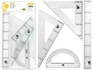 Juego escuadra y cartabon 25cm regla 30cm y semicirculo 15cm liderpapel en petaca incolora