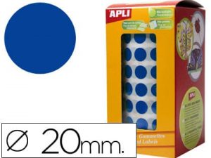 Gomets autoadhesivos circulares 20mm azul rollo de 1770 unidades