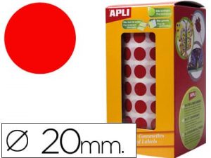Gomets autoadhesivos circulares 20mm rojo rollo de 1770 unidades