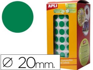 Gomets autoadhesivos circulares 20mm verde rollo de 1770 unidades