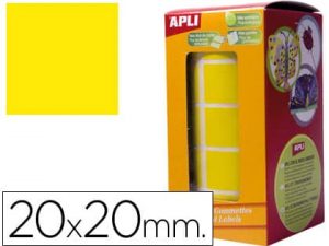 Gomets autoadhesivos cuadrados 20×20 mm amarillo rollo de 1770 unidades