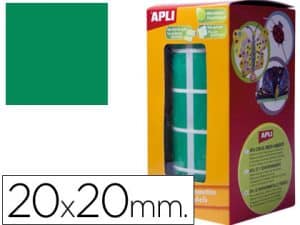 Gomets autoadhesivos cuadrados 20×20 mm verde rollo de 1770 unidades