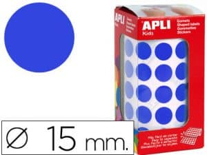 Gomets autoadhesivos circulares 15 mm azul en rollo con 2832 unidades