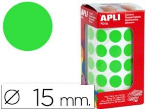 Gomets autoadhesivos circulares 15 mm verde en rollo con 2832 unidades