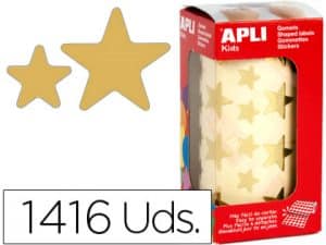 Gomets autoadhesivos estrellas grandes oro en rollo con 1416 unidades
