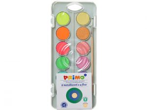Acuarela primo 8 colores metal + 4 colores neon con pincel y paleta de mezcla estuche de plastico