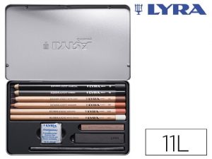 Lapices lyra rembrandt monocromo con accesorios para esbozos caja metalica de 11 unidades