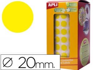 Gomets autoadhesivos circulares 20 mm amarillo rollo de 1770 unidades