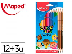 Lapices de colores maped color peps world caja de 12 colores surtidos + 3 duo tonos de piel