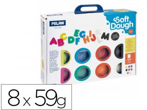 Pasta milan para modelar soft dough muchas letras con herramientas maletin con 8 botes colores surtidos 59 g