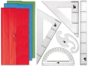 Juego escuadra y cartabon 25cm regla 30cm semicirculo 15cm y plantilla de curvas liderpapelen petaca opaca color verde