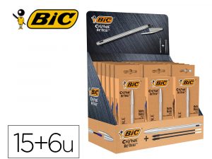 Boligrafo bic cristal renew 21 expositor 15 unidades azul + 6 negro regalo 50 bic cristal azul