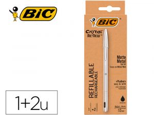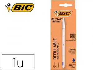 Boligrafo bic cristal renew tinta azul con cuerpo en aluminio mate mas 2 recambios en caja carton