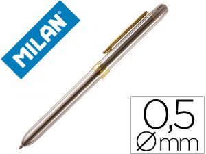 Boligrafo milan multifuncion cromado adornos dorados azul/rojo/portaminas 0,5 mm/ goma de borrar en caja metal