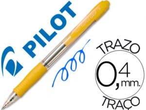 Boligrafo pilot super grip amarillo retractil sujecion de caucho tinta base de aceite