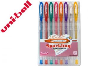 Boligrafo uni ball um-120 signo 0,7 mm tinta gel estuche de 8 colores con purpurina
