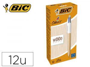 Boligrafo bic cuatro colores wood caja de 12 unidades colores surtidos