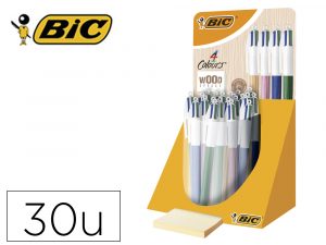 Boligrafo bic cuatro colores wood expositor de 30 unidades colores surtidos