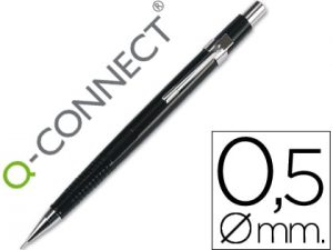 Portaminas q-connect 0,5 mm con 3 minas cuerpo negro con clip negro