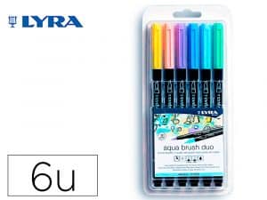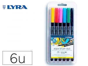 Rotulador lyra aqua brush acuarelable doble punta y pincel tonos primarios blister de 6 unidades