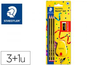 Lapices de grafito staedtler noris n.2 hb blister promocional 120 anivers de 3 uds + afilalapiz con deposito