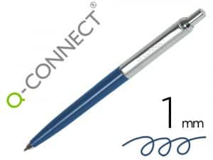 Boligrafo q-connect premium metalico retractil con clip color azul punta 1 mm